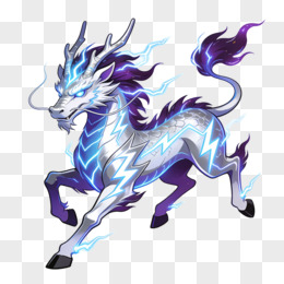 卡通蓝紫色闪电麒麟免抠元素