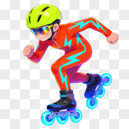 卡通穿着闪电图案紧身速滑衣的男孩轮滑冲刺免抠元素