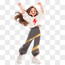 金光飞舞女孩卡通手绘元素