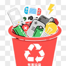 红色有害垃圾桶卡通插画元素