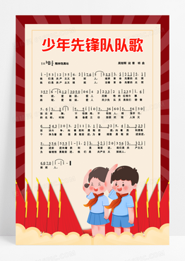 红色卡通少年敬礼先锋队歌曲宣传海报