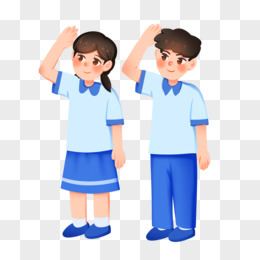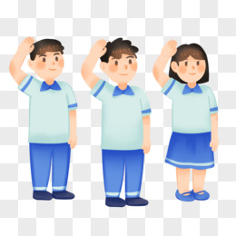 卡通手绘穿着蓝色校服学生敬礼免抠元素