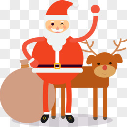 小清新卡通手绘插画圣诞老人手拿礼物元素