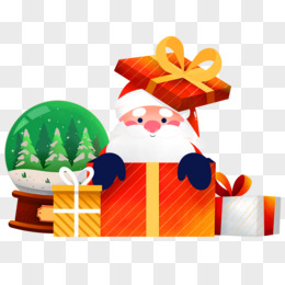 手绘卡通圣诞老人和企鹅被灯泡缠住创意素材