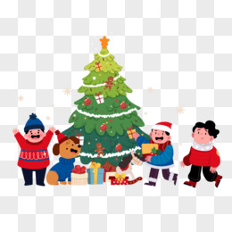 手绘卡通圣诞节小朋友挑选礼物素材