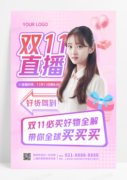 粉紫色弥散卡通摄影双十一直播促销海报