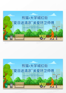 简约时尚卡通创意夏日送清凉关爱环卫师傅宣传展板