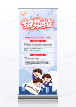 简约卡通矢量建筑企业酒店精英召集招聘x展架易拉宝