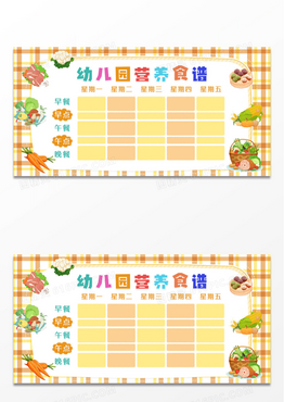 橙色简约大气卡通风幼儿园营养食谱幼儿园食谱展板