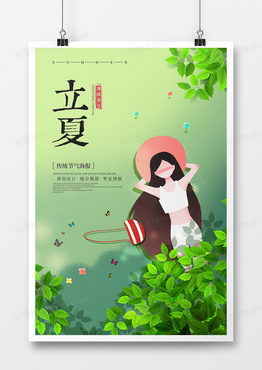绿色卡通时尚立夏节气海报