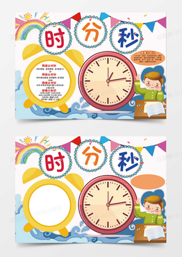 时分秒可爱卡通简洁多彩缤纷数学手抄报