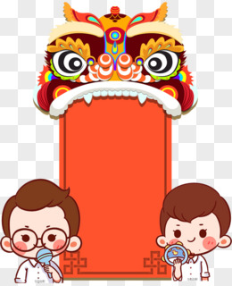 唯美精美中国风卡通可爱小人舞狮子放鞭炮
