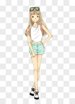 手绘可爱卡通夏天小女孩悠闲的乘船插画元素