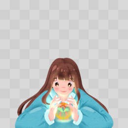 卡通手绘守护生命微光的女孩免抠元素