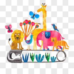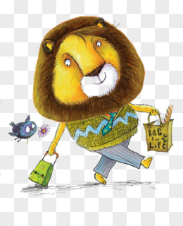 卡通拟人狮子和鳄鱼玩碰碰车元素一