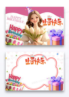 大气简约手绘卡通饭圈可爱风明星生日应援横版明信片