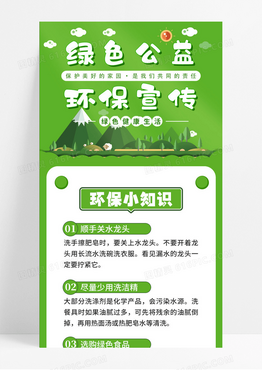 绿色公益环保宣传手机长图文卡通手绘环保知识手机长图