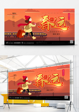 卡通手绘新年一家人坐火车春运场景免抠元素
