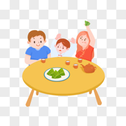端午节传统节日团圆创意卡通手绘家人团圆饭