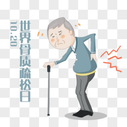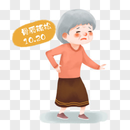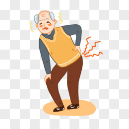 卡通手绘老人坐在凳子上腰疼免抠元素