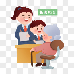 一组卡通手绘插画风适老服务套图之长者柜台元素