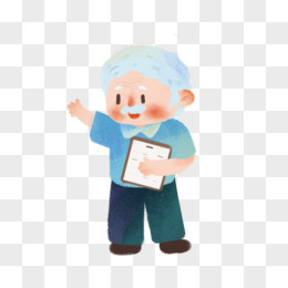 卡通手绘秃头糊里糊涂的老人免抠素材