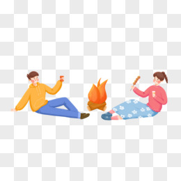 一组手绘卡通中学生军事夏令营场景之生火素材