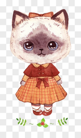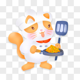 卡通手绘拟人猫咪小猫大厨煎鱼烹饪做菜素材
