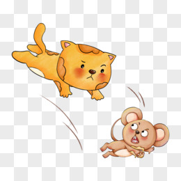 卡通手绘橘猫和灰老鼠免抠元素