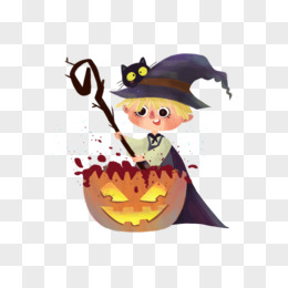手绘插画万圣节南瓜小巫师