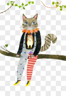 卡通手绘免抠小猫咪素和蝴蝶玩素材