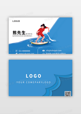 海洋运动卡通手绘冲浪俱乐部创意个性名片