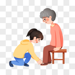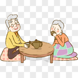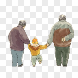 手绘卡通老人摔倒老伴手足无措免抠元素