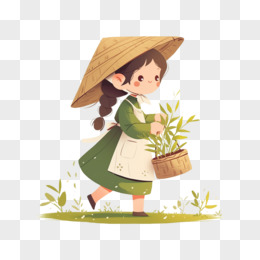 卡通手绘少女采茶免抠元素