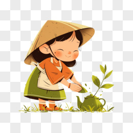 卡通手绘采茶女茶园采摘茶叶春茶元素