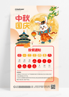中秋节之手绘卡通月圆灯笼兔子场景图