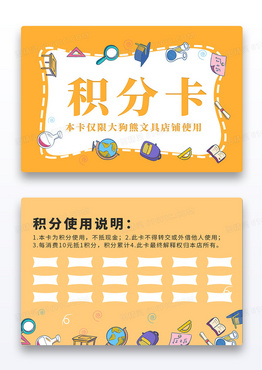 卡通手绘可爱学校学生文具用品积分卡