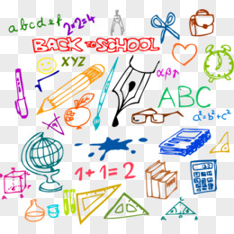 一组卡通手绘学生用品免抠元素
