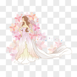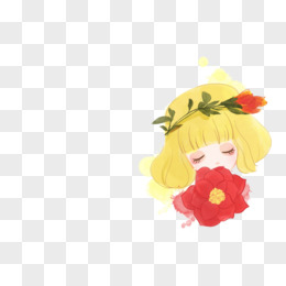 手绘卡通唯美手捧鲜花的女性免抠素材