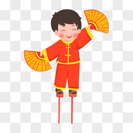 手绘卡通戴虎头帽放烟花的小男孩免抠元素