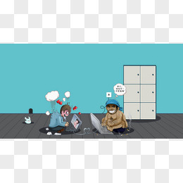 手绘卡通三个3D小人沿着一个箭头走路免抠元素
