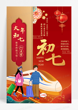 卡通手绘一家人欢欢喜喜回家过年免抠元素