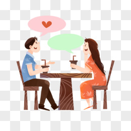 手绘卡通闺蜜喝咖啡聊天场景素材