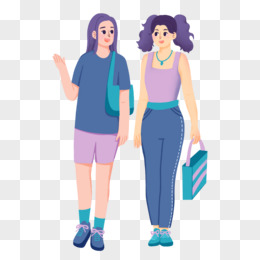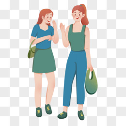 手绘卡通两个小女孩打招呼聊天免抠素材