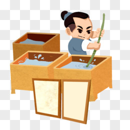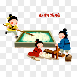 卡通手绘造纸术第三步把材料捣碎发明素材