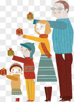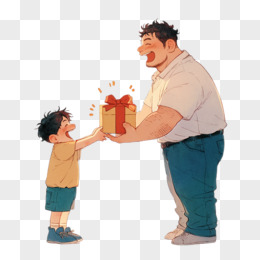 卡通风父亲节孩子给父亲送礼物免抠元素