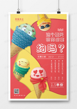 卡通创意甜筒促销活动海报