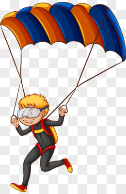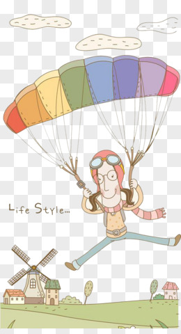 一组卡通线描风海陆空三军人物形象之空军跳伞元素