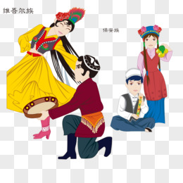 卡通两个穿着内蒙古服饰的男女在跳舞免抠元素