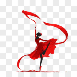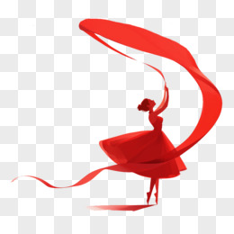 卡通风红色短裙芭蕾舞者飘带剪影免抠元素